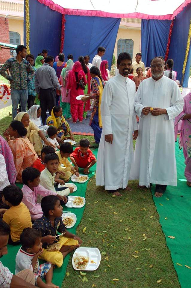 Fr Rosario Antao and Fr Menino Gomes during a fellowship meal (langar) at St Anne's Church, Rania-Haryana.