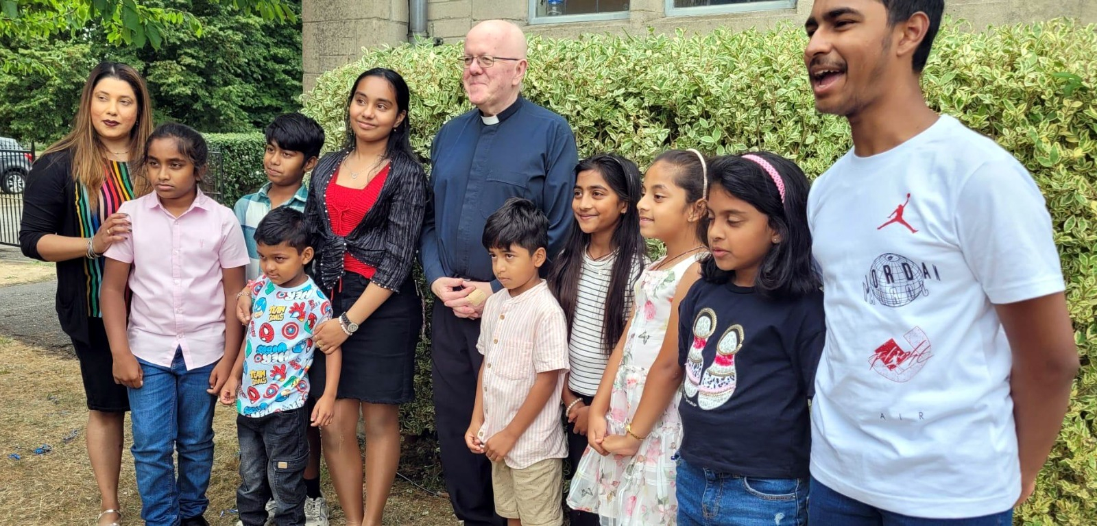 Natasha Vas along former parish priest Fr Michael McAndrew and the children’s choir at St Mary’s Catholic Church, Swindon.
