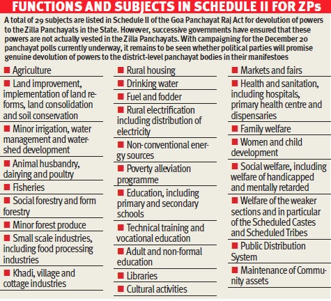 Yet the real and uncomfortable question remains deliberately unaddressed: Did the government devolve even a single one of the 29 subjects and powers to the Zilla Panchayats, as mandated under the Goa Panchayati Raj Act and the 73rd Constitutional Amendment? Or were Zilla Panchayats merely pacified with grants, while being systematically denied authority by successive governments through the release of financial grants, without any meaningful transfer of powers?