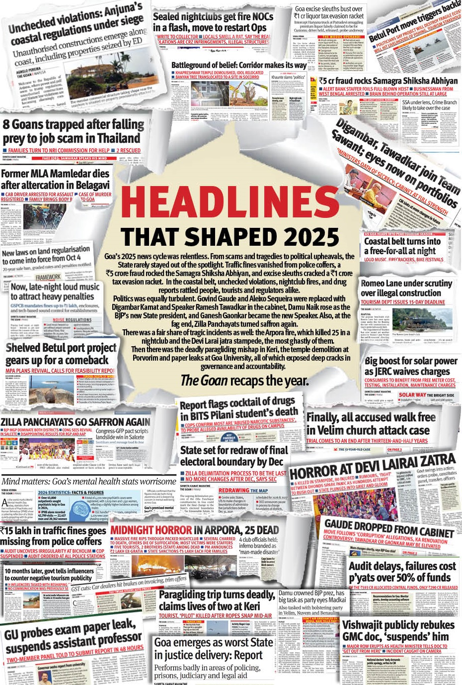 Then there was the deadly paragliding mishap in Keri, the temple demolition at Porvorim and paper leaks at Goa University, all of which exposed deep cracks in governance and accountability. The Goan recaps the year.