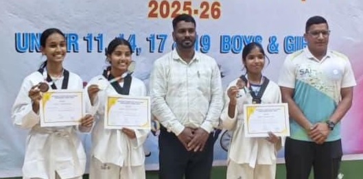 MARGAO: Students from Holy Cross Institute, Cavelossim won three medals at a State-level taekwondo tournament organised by the Directorate of Sports and Youth Affairs. Four under-17 girls represented the institute at the competition. Prema won a silver medal in her category, while Pallavi Gaonkar and Anchal Upadhyay secured bronze medals in their respective events. The athletes were trained by physical education teacher Richard Mascarenhas, who guided the team during their preparation.