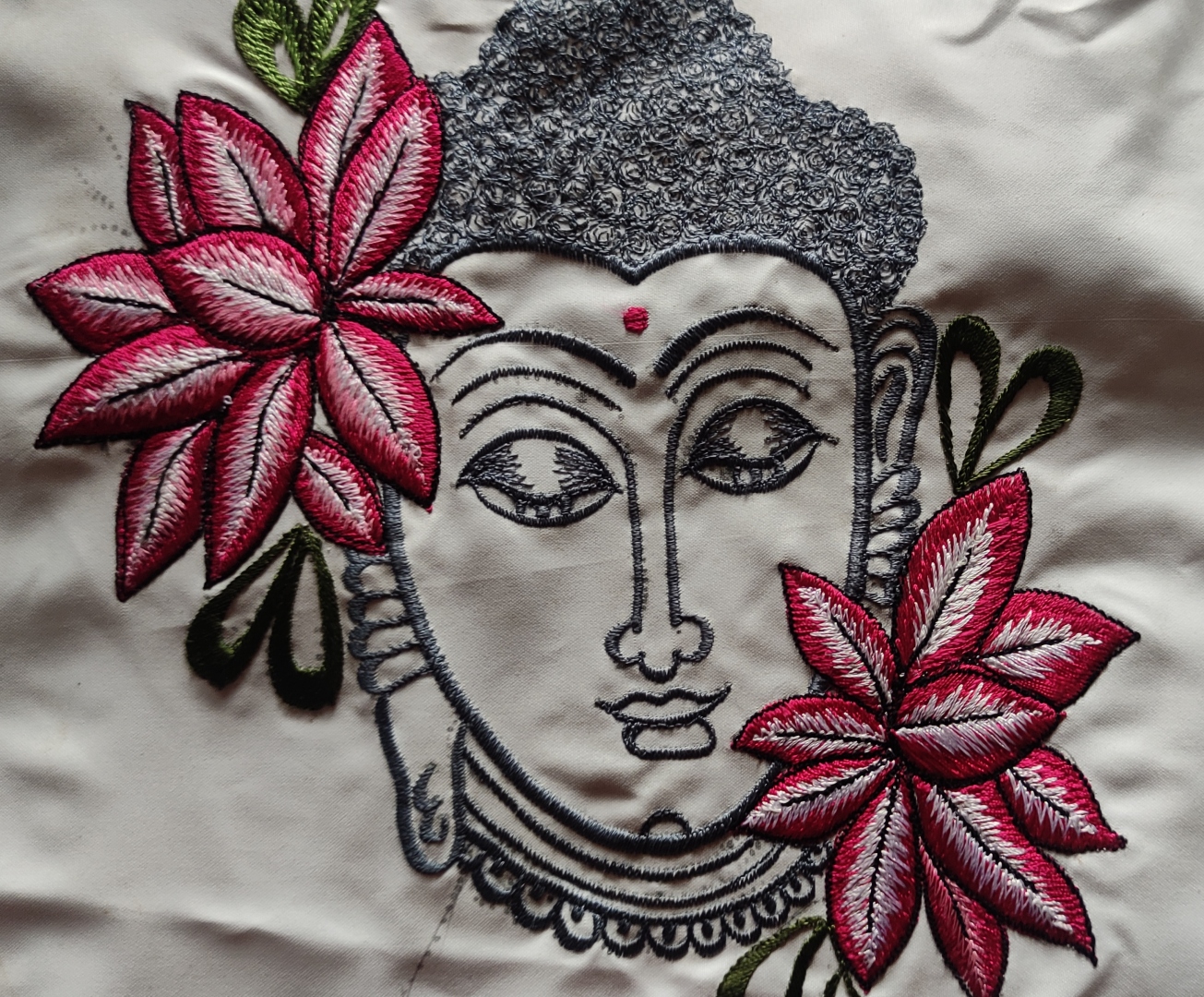 Today, they make impeccable embroidery designs on their manual machine. They cater to many 5-star hotels in Goa, Goa Police, Indian Navy, schools, government offices, IFFI, Kala Academy and many cultural events and institutions. They also cater to temples, mosques as well as Christian artworks for events like weddings, communions and see many priests visiting them and commissioning beautiful, one-of-a-kind embroidery work to adorn their church altars and religious attires.