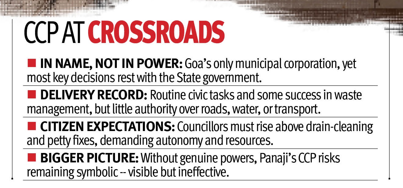For Panaji to evolve into a modern, well-managed capital, its civic body must be empowered with genuine authority over planning, infrastructure, and development. Until then, the CCP will remain a symbolic institution — visible but ineffective, present but powerless, a corporation only on paper.